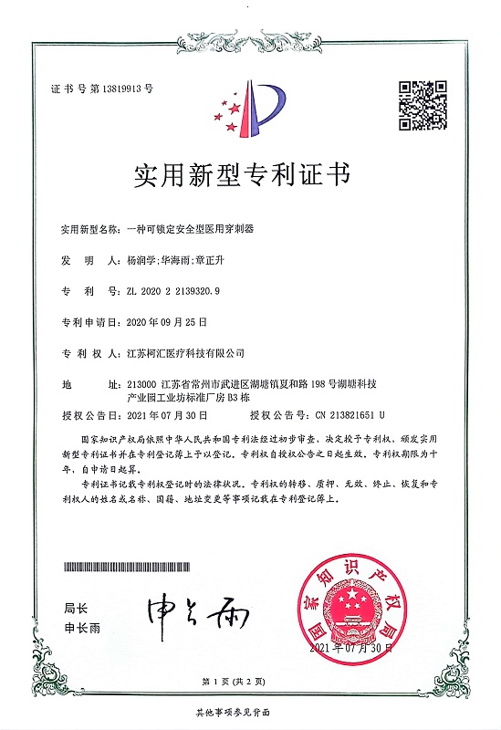 在創業發展的道路上,獲得的個人榮譽不勝枚舉。近年來取得了發明專利3件,實用新型專利47件;獲得“江蘇省科技民營企業”企業家稱號;常州市科技局授予“常州市妖精黄色网站醫療器械工程技術研究中心”高級工程師稱號;2017年推選擔任江蘇省甘肅商會副會長;2019年,獲得常州市民營企業家“百千萬工程”千人班結業證書;2022年獲得武進區政府頒發“武商服務卡”;2024年獲得常州市政府頒發“常商服務卡等係列榮譽稱號。